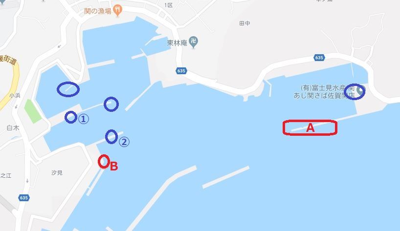 ②は冬(11月~2月)はサビキ釣りの人が多いのですが、