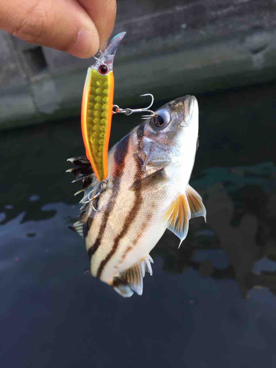 20cmのアジ釣れました。続けて3匹。